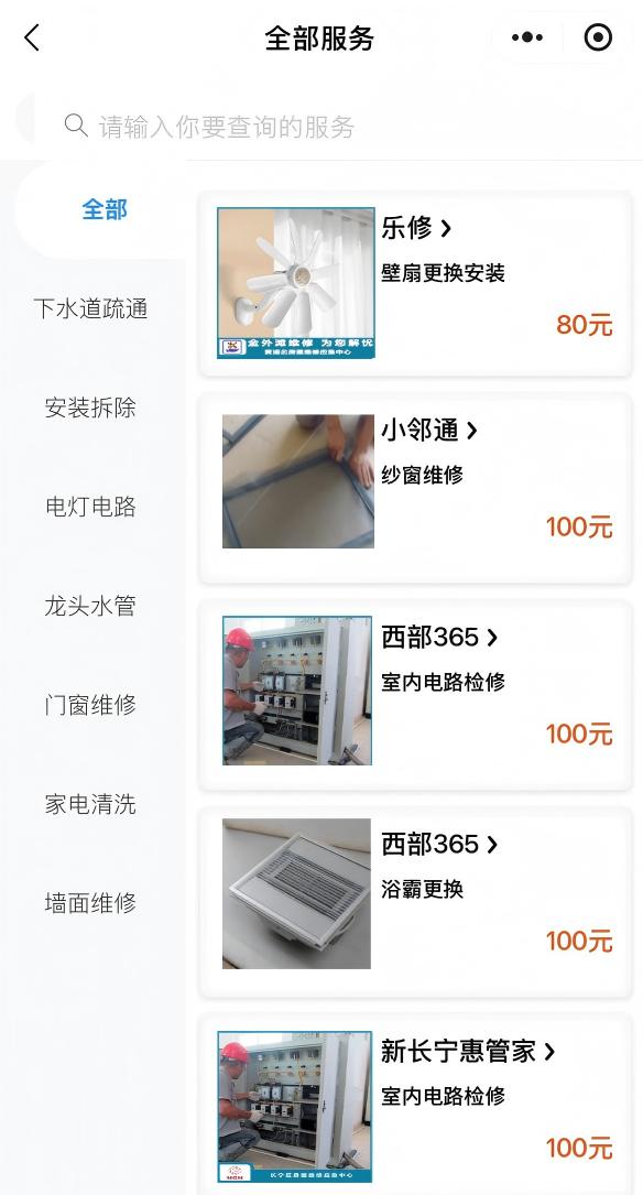 “我们始终坚持‘以便民利民为民为宗旨,以老百姓满意为出发点’的服务初心,不断拓宽特约服务覆盖范围,丰富特约服务项目种类。”上海市物业中心相关负责人告诉记者,目前,第三方特约维修服务范围已覆盖全市各行政区(崇明区除外)及主要街镇,服务项目包含空调清洗、电灯电路安装维修、下水道疏通、门窗维修、龙头水管维修更换、墙面修补等七大类67项。