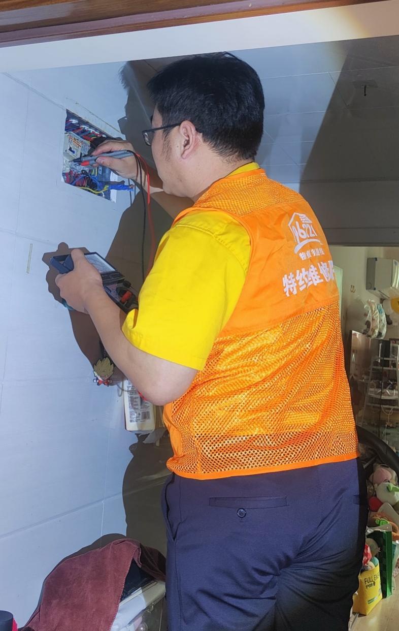 9月23日,维修师傅正在乔先生家排查电路故障。受访者供图